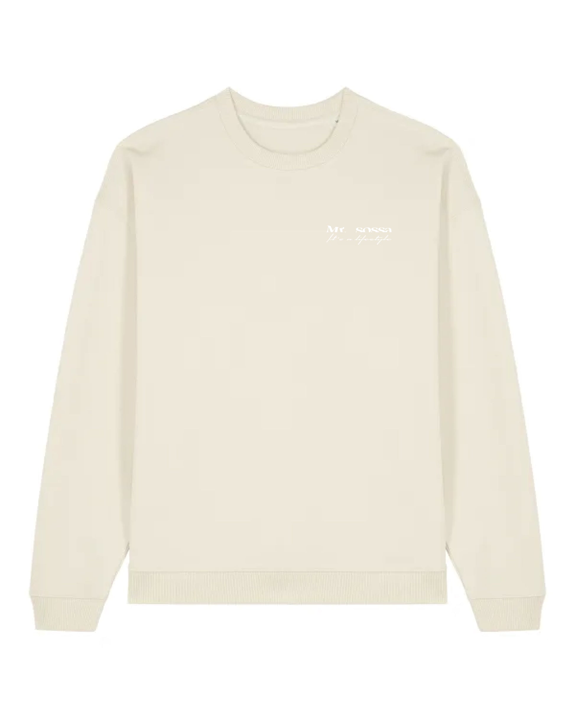 Introducing the Mr Sossa Sweatshirt in the colour Natural Raw, a Sweatshirt crafted from luxury heavy weight cotton, with a slightly oversized fit. It features our Logo Print graphic to the front and back,